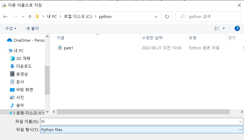 파일저장과정 중간에 한글이 들어가면 오류가 날 수 있어서 c 또는 d드라이브에 python이라는 폴더명을 만들어 영어로된 파일명을 저장하는 것이 좋다