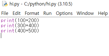 [file]-[save](*py)-[run]-[run module] =>한꺼번에 결과 출력 가능