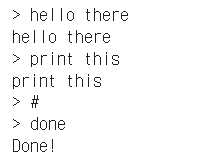 #이나 done 외의 문자를 입력시 해당 줄을 수행한다