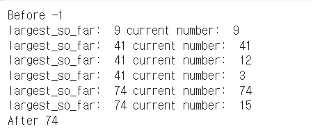 만약 이전에 가장 큰 값보다 크면 largest_so_far에 넣고 아니면 그냥 넘어간다