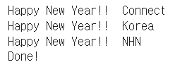 그리고 루프를 빠져나와 맨 마지막으로 가니까 Done!이 출력된다