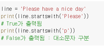 startswith 메서드를 사용해서 특정문자열로 시작하는지 파악할 수 있다