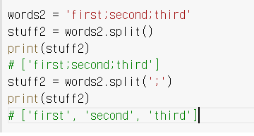 split 함수의 default 값이 공백이기 때문에 split해도 예시처럼 공백없이 ; 가 포함되어 한묶음으로 나온다