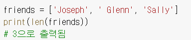 len은 길이를 나타내니까 len(friends)하면 friends 원소개수인 3이 나온다