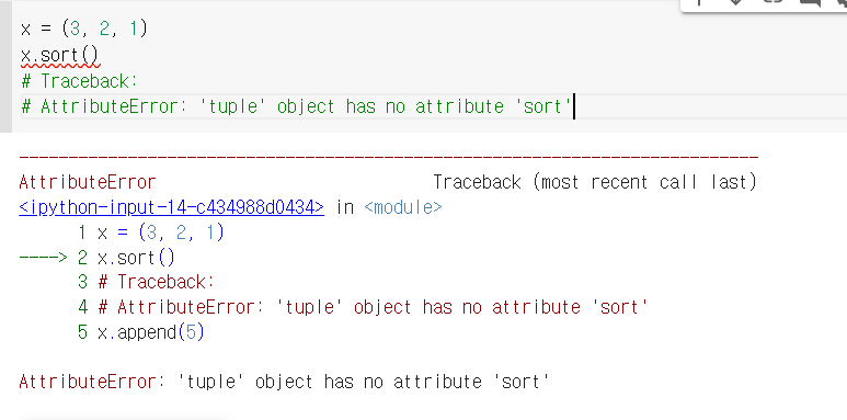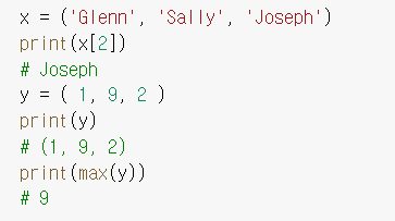 하지만 리스트와 달리 ()를 사용한다 그리고 리스트와 달리 수정은 불가능하다