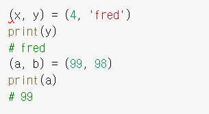 - 튜플을 활용해 키와 값을 분리한다.